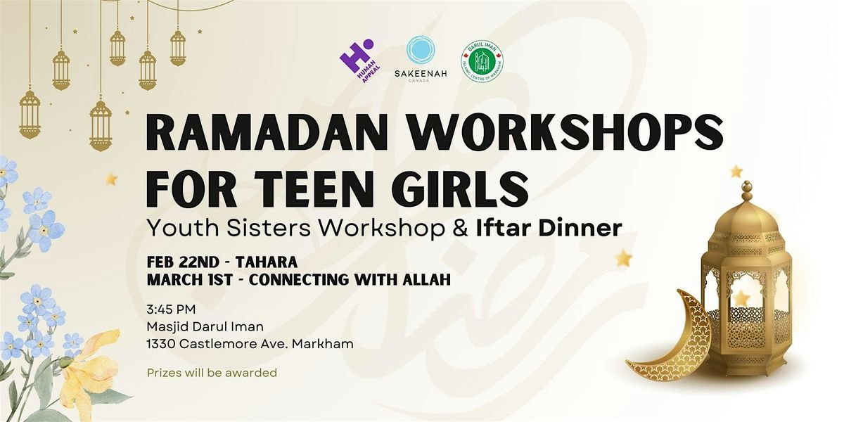 Calling all teen girls! Join us for an informative and enlightening afternoon of learning and sisterhood at this special workshop with iftar and prize giveaways!