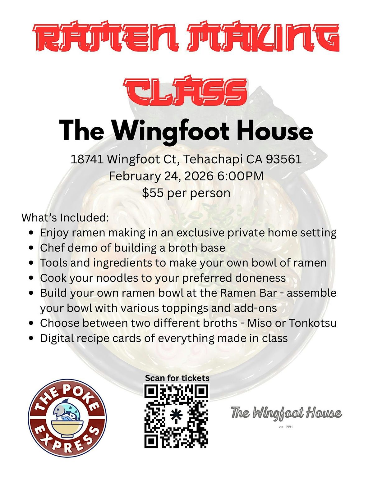 Join The Poke Express for an intimate, hands-on ramen making experience hosted inside the beautiful Wingfoot House—a thoughtfully designed private home that offers a warm, relaxed, and elevated setting unlike a traditional cooking class venue.