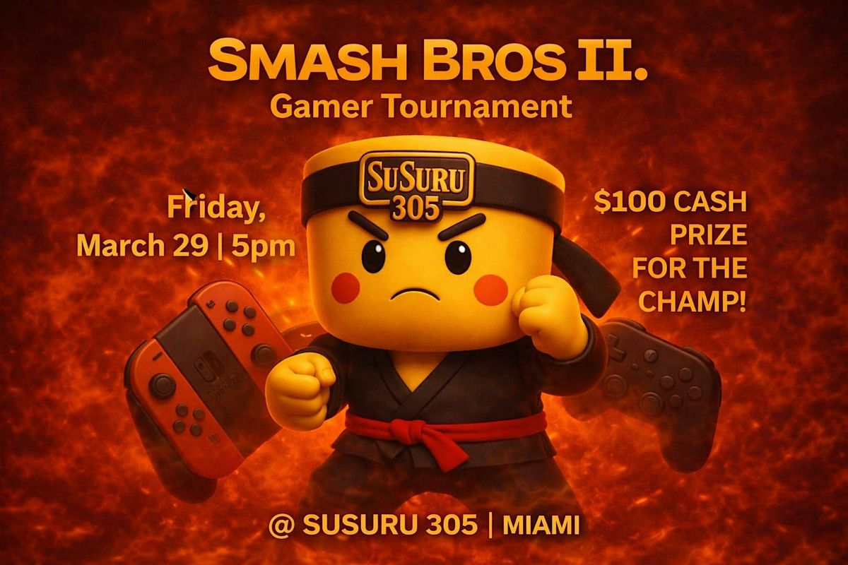 Welcome to the Ramen Rumble In The Jungle#5! 🍜 A Susuru 305 - Smash Bros Tournament happening at Susuru 305! Get ready to Battle it out with your friends while enjoying delicious ramen, exotic snacks, and exotic beverages!