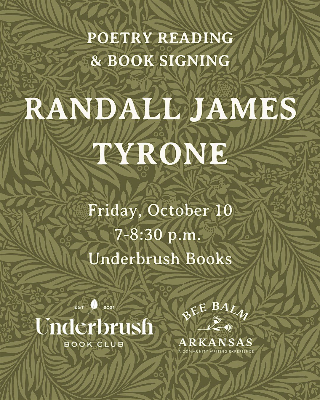 Join us for a reading of Randall’s debut novel-in-verse, City of Dis, at Underbrush Books, the coolest spot in downtown Rogers. Opening readings by Bee Balm Arkansas community members, and drinks downtown after. Come hear some great poems and connect with other writers and listeners from across the region.