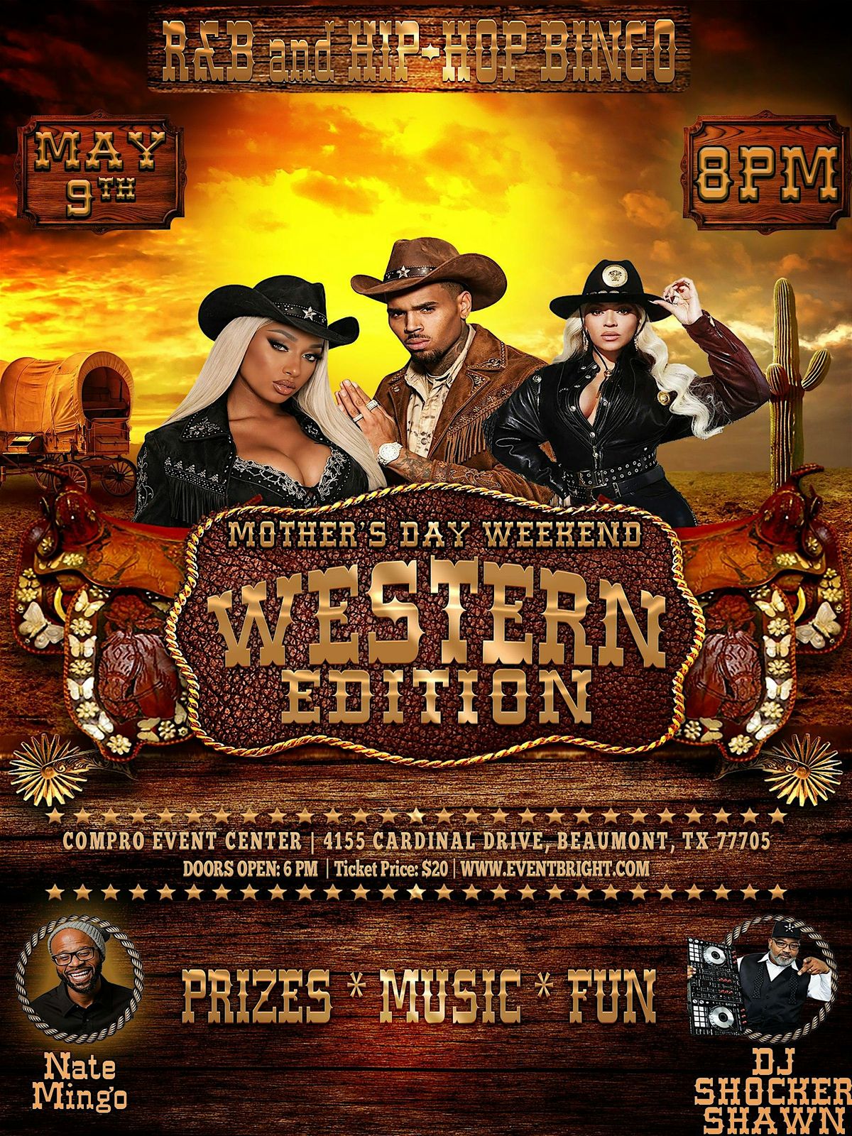 Come join us for a night of music, fun, and prizes at the Compro Event Center! Get ready to groove to your favorite R&B and Hip-Hop hits while playing a classic game of bingo with a twist. Bring your friends and family for a chance to win some awesome prizes. Don't miss out on this exciting event - mark your calendars now! Food and drinks will be available.
