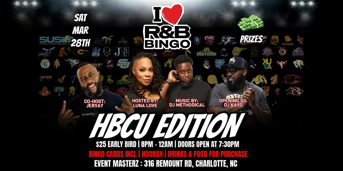 Welcome to the ultimate HBCU Homecoming experience for R&B lovers! Get ready for a high-energy night where classic and modern R&B meet the excitement of bingo β all wrapped in the vibrant culture, pride, and spirit of Historically Black Colleges and Universities.