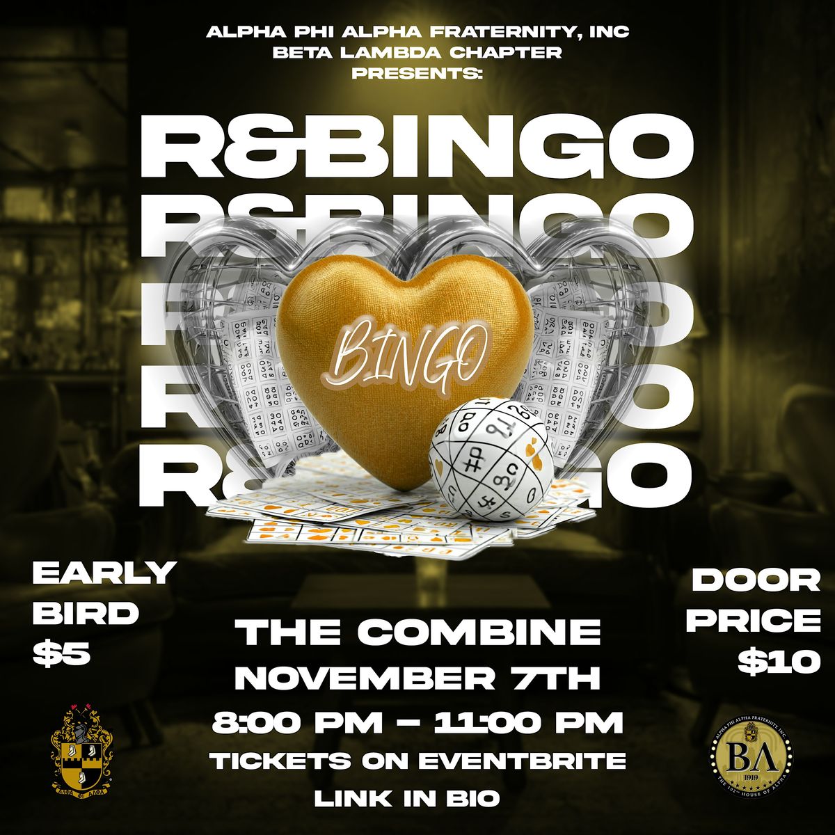 Come join us for a fun night of R&B Bingo at The Combine! Get ready to groove to your favorite R&B tunes while playing a classic game with a musical twist. Bring your friends and enjoy a lively atmosphere filled with great music, good company, and the chance to win some awesome prizes. Don't miss out on this unique event - see you there!