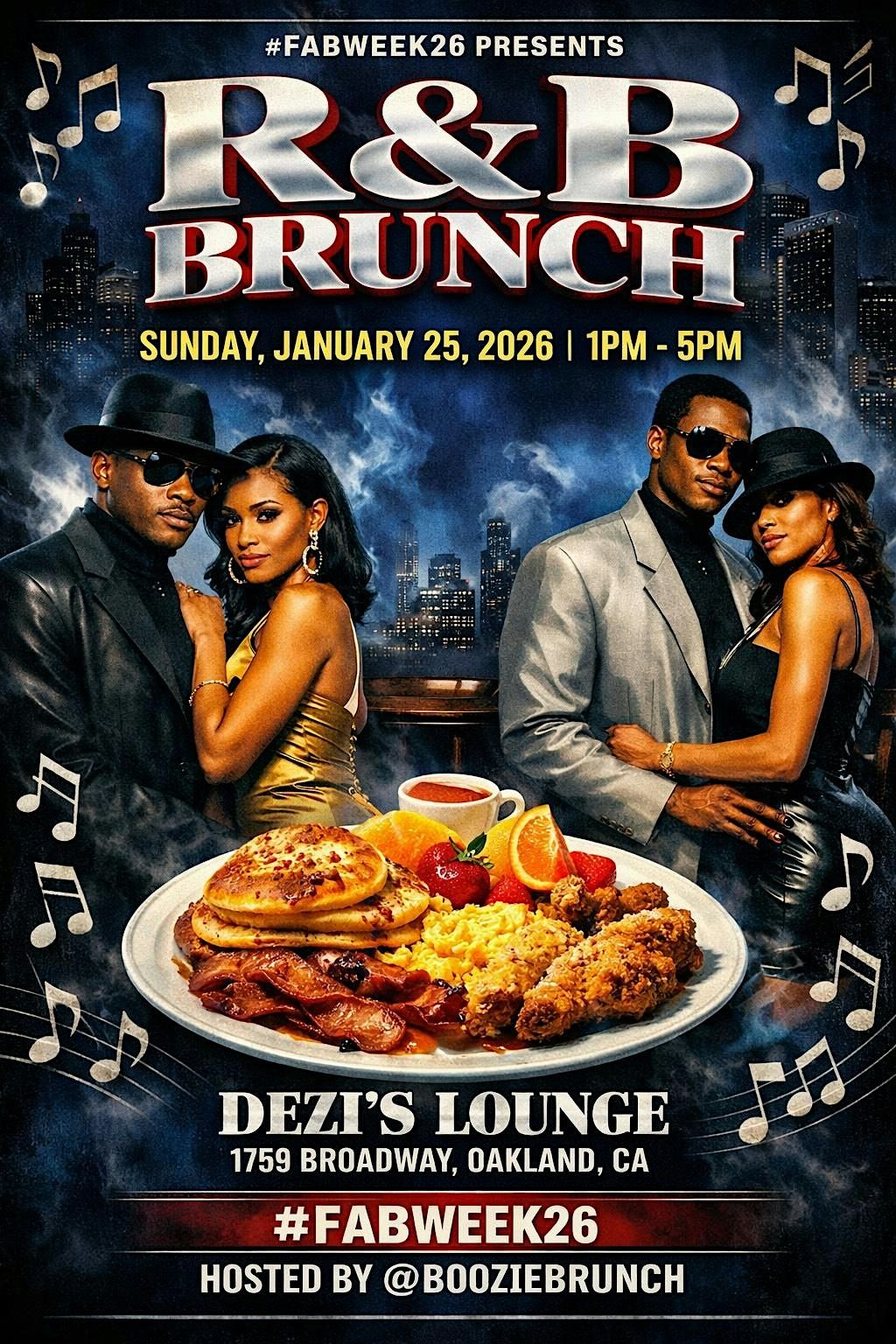 FAB WEEK 26 DAY #7: Sunday Brunch at Dezi's Lounge Upstairs in Downtown Oakland. Special Celebrity Guests will be in attendance. Suggested booth purchase for spectacular views of the FOX Theatre or overlooking Broadway. TVs Indoors/Outdoors, Bottles on deck, Mimosas, Great Food, and Entertainment. Chef extraordinaire TBA. Support a great cause and meet us there for brunch, comedy, playoff games, music entertainment & MIMOSAS! Hosted by IG's @BoozieBrunch. Upscale attire recommended. Stairs to enter venue. The ERA WAY...