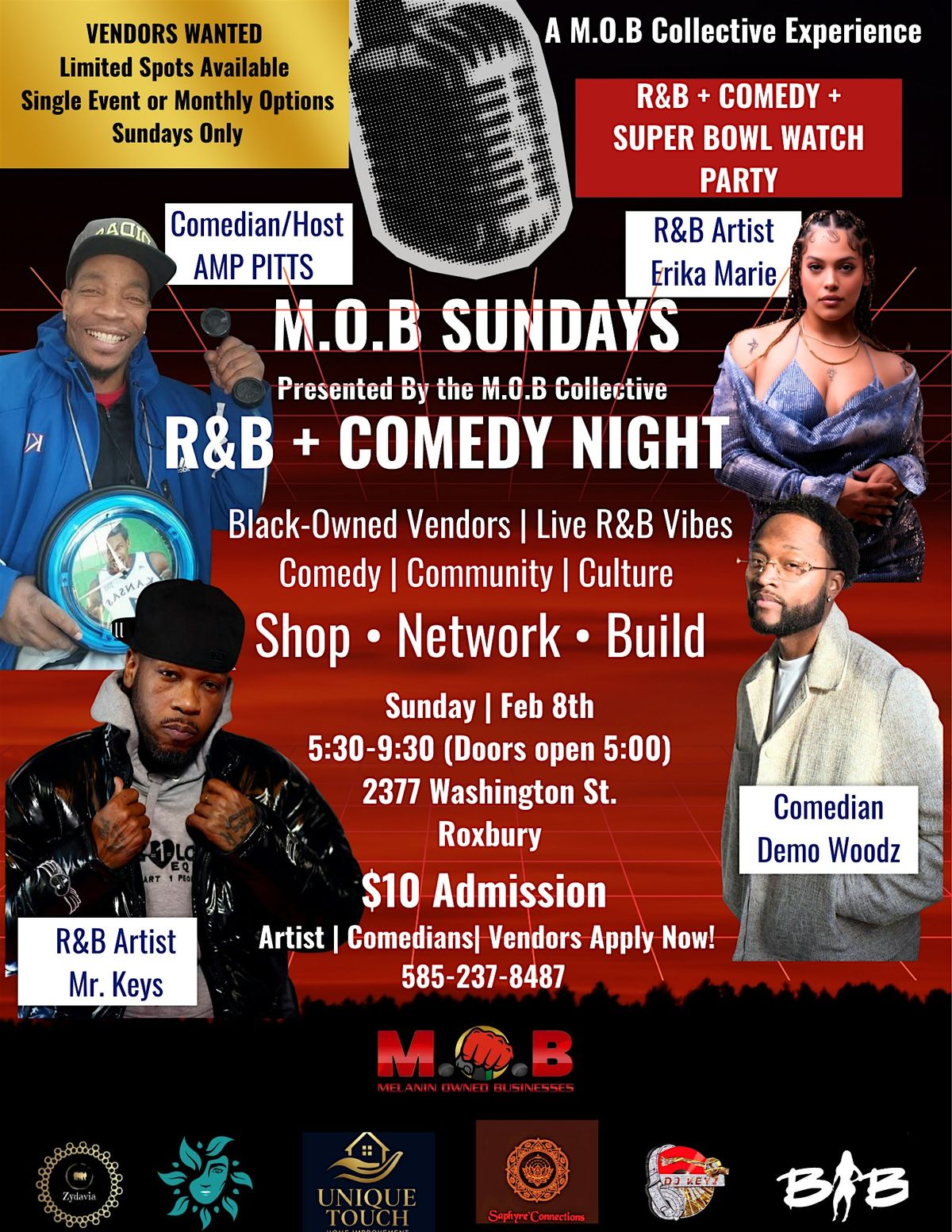 Welcome to the R&B + Comedy event happening at 2237 Washington St on February 8, 2026 at 5:30 PM (Eastern Time). Get ready for a night filled with soulful tunes and side-splitting laughter and the Super Bowl!