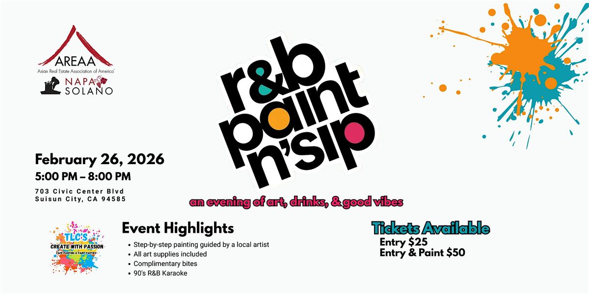 Get ready for a night of creativity, music, and good vibes at R&B Paint ’n Sip, hosted by AREAA Napa Solano. 🎨🍷