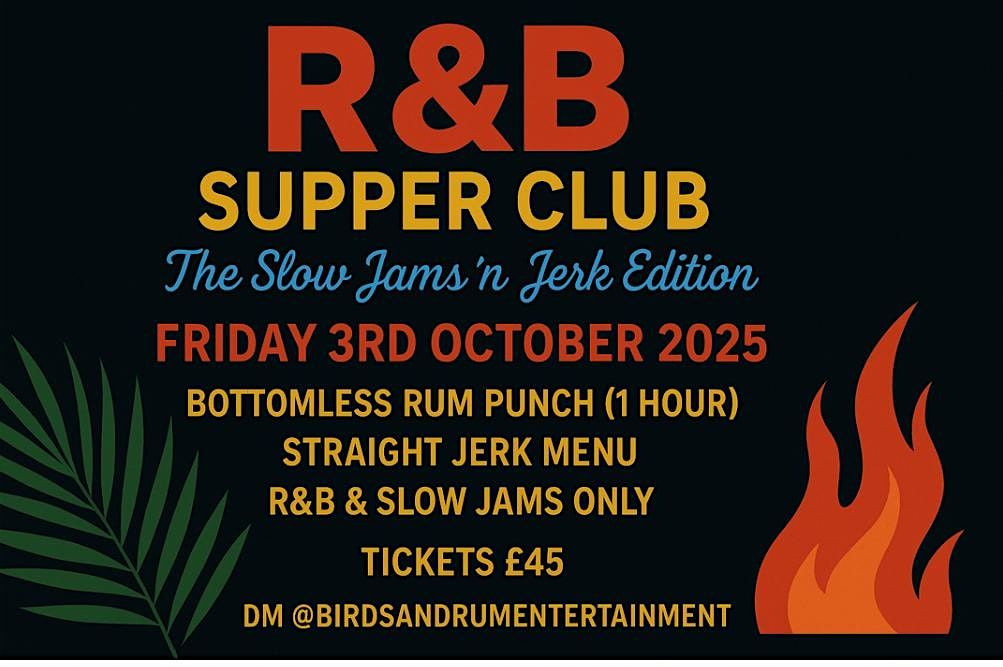 Step into a night of soulful R&B, slow jams, and island spice at the R&B Supper Club – The Slow Jams ’n Jerk Edition.