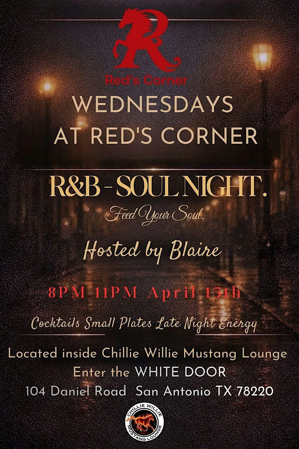 Join us for Wednesdays at Red’s Corner: R&B Soul Night — where the vibes are grown, the music hits deep, and the energy feeds your soul.