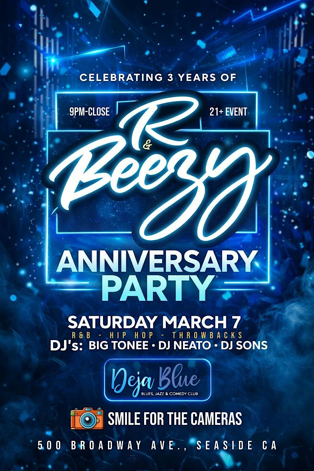 Join us at Deja Blue for a night dedicated to the music, the memories, and the movement thatβs made R & Beezy a Monterey Bay favorite.