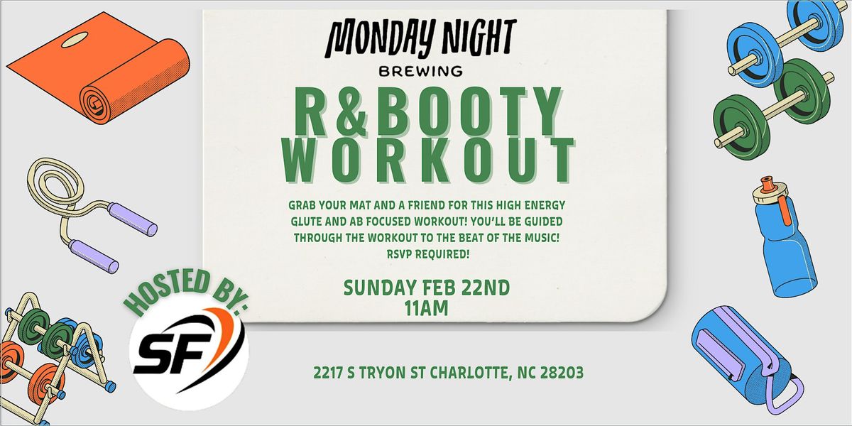 Welcome to the R&Booty Workout event happening at Monday Night Brewing - Garden Co. on February 22, 2026 at 11:00 AM (Eastern Time)! Get ready to sweat, groove, and tone those glutes with our high-energy workout session. Join us for a fun-filled morning of fitness and music that will leave you feeling energized and empowered. Don't miss out on this opportunity to work on your booty while having a blast! Your ticket includes your first beer or mimosa!