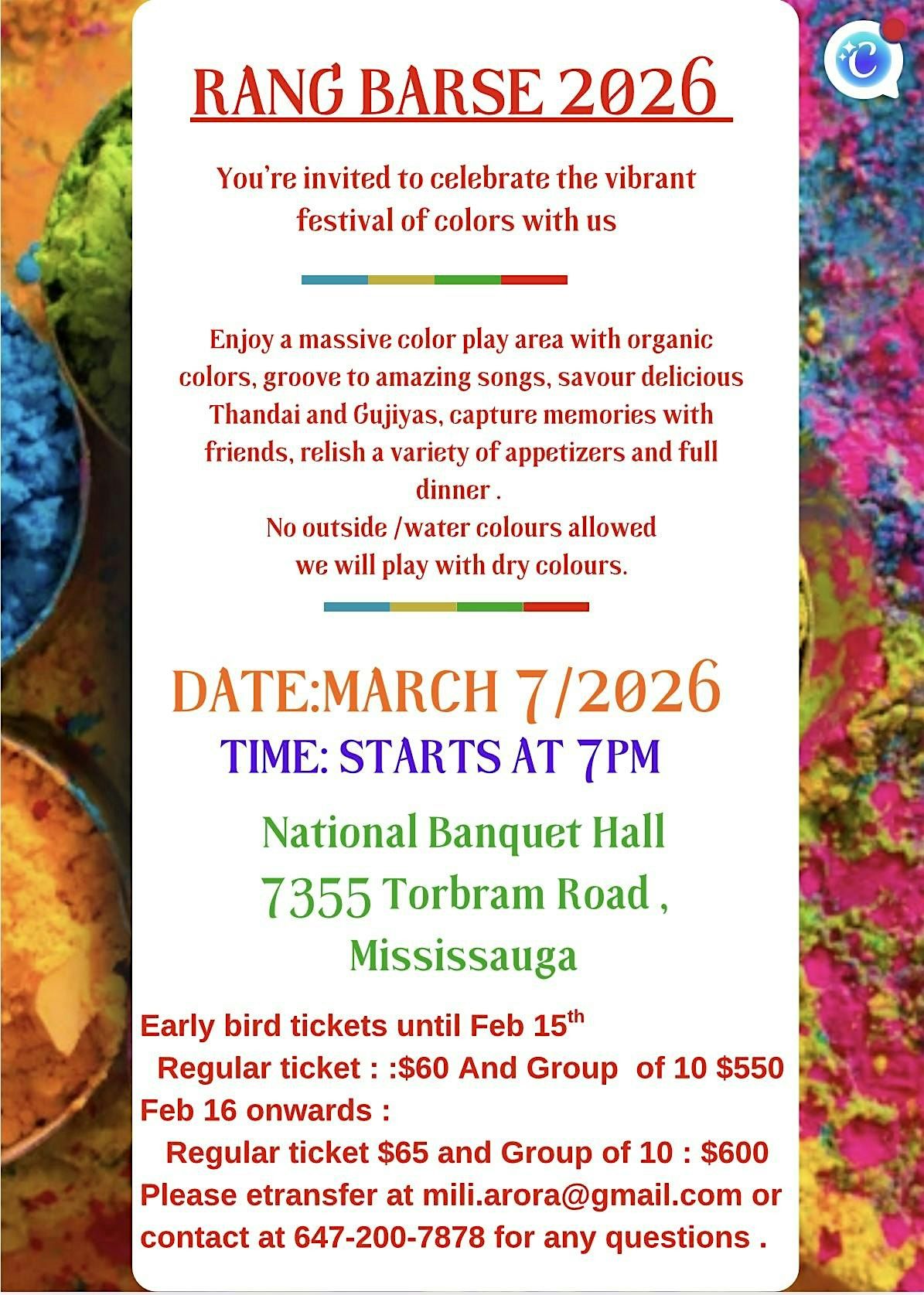 Join us for Award Winning Rang Barse 2026, the ultimate celebration of Holi with dry colors and joy!