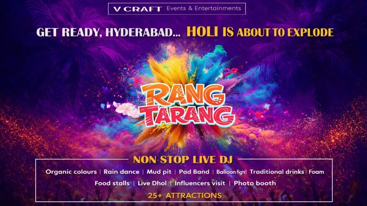This Holi, don’t just celebrate — experience it! 🌈Welcome to Rang Tarang by V Craft Events & Entertainments, where colors meet music and madness meets magic. Get drenched in organic gulal, dance your heart out in the rain dance arena, and dive into the wild fun of our high-energy Mud Pit — because Holi is meant to be messy, crazy, and unforgettable!✨ Rain Dance Arena✨ Live DJs spinning Tollywood, Bollywood, Commercial & EDM✨ Organic Colors✨ Punjabi Dhol✨ Mud Pit Experience✨ Food & Beverage Stalls✨ Instagrammable Setups and much moreBring your squad and get ready for a festival packed with colour, music, mud, and pure festive adrenaline.More colour. More music. More madness.