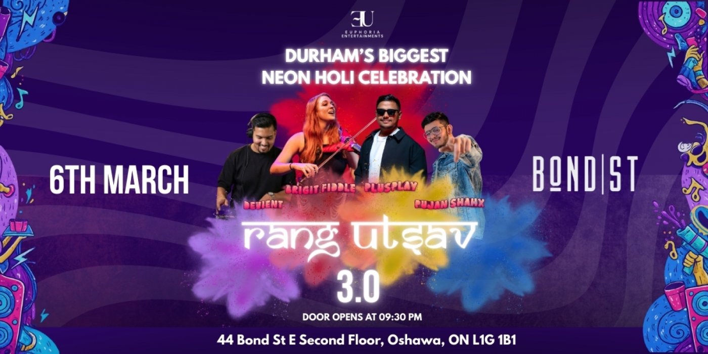 Get ready to experience Rang Utsav 3.0 the most electrifying Holi Neon Party of the year! Join us on March 6th, 2026 at Bond St Event Centre where vibrant colors neon lights and non-stop music will set the night on fire!