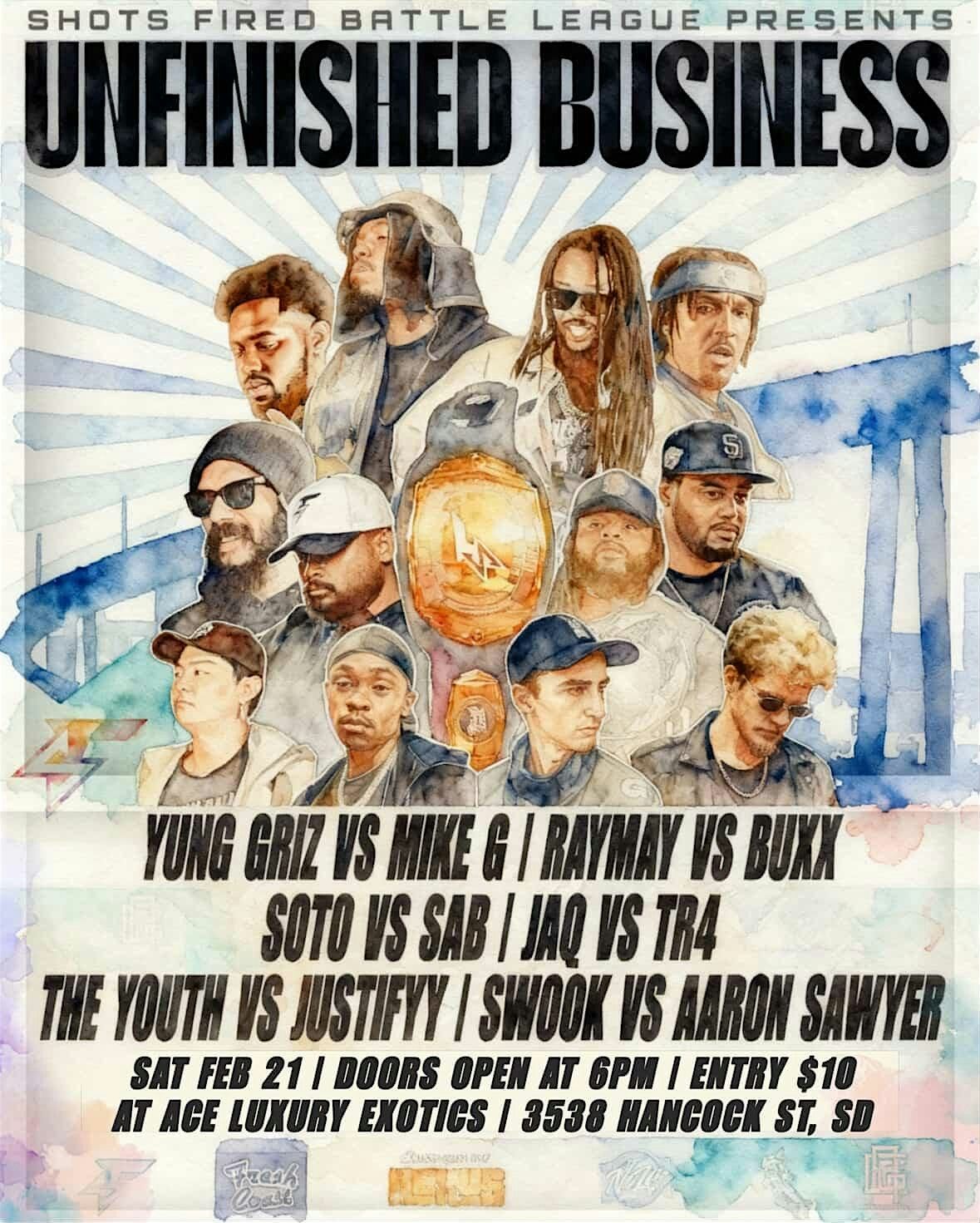 San Diego County's Rap Battle League, Shots Fired, is bringing you another high-caliber line-up of rappers going bar for bar!