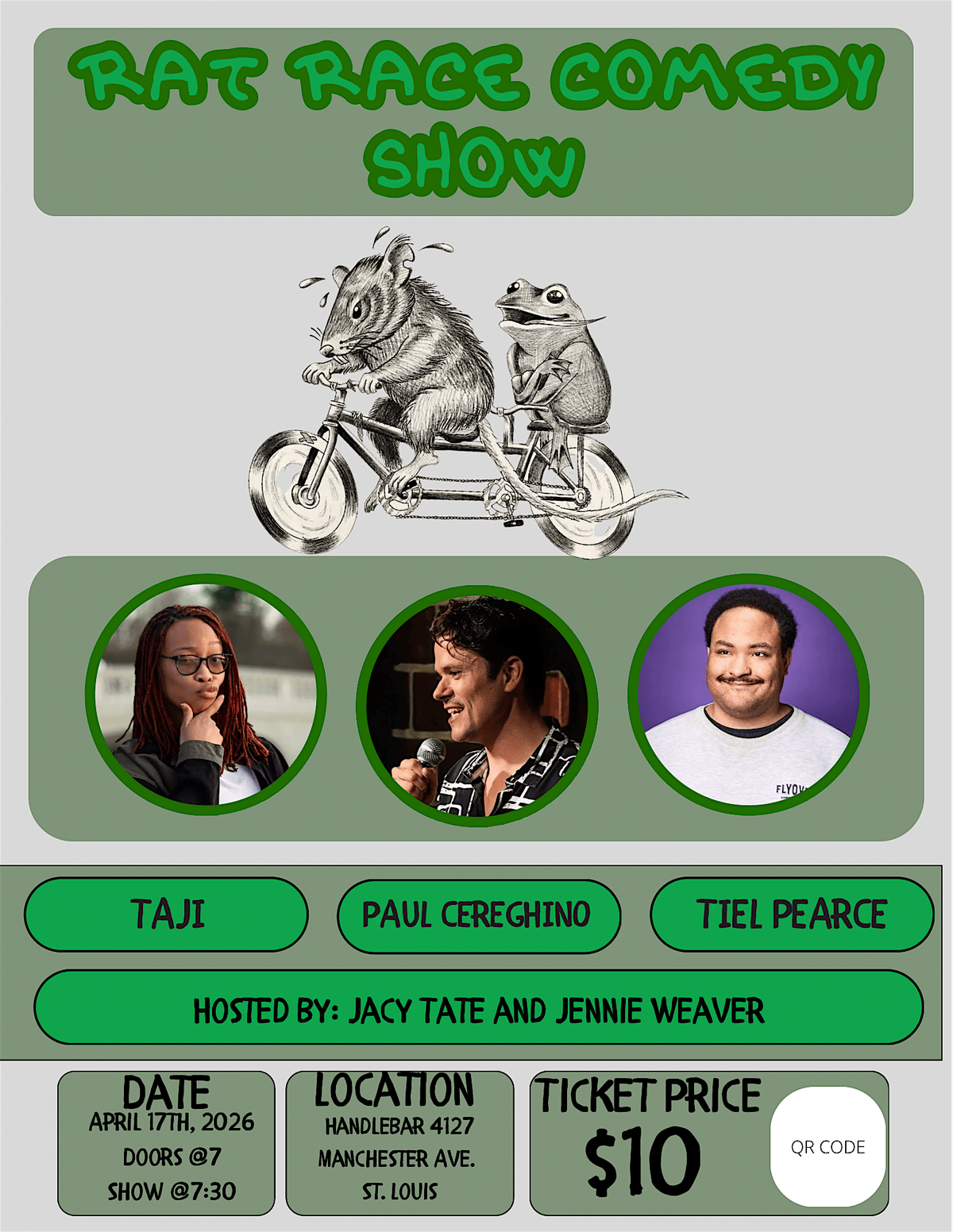 Get ready for a night full of laughs at the HandleBar! Join us on April 17, 2026 at 7:30 PM for the Rat Race Comedy Show. It’s the perfect way to unwind and enjoy some hilarious stand up in a welcoming, in person setting. Bring your friends and come hang out where the jokes never stop!