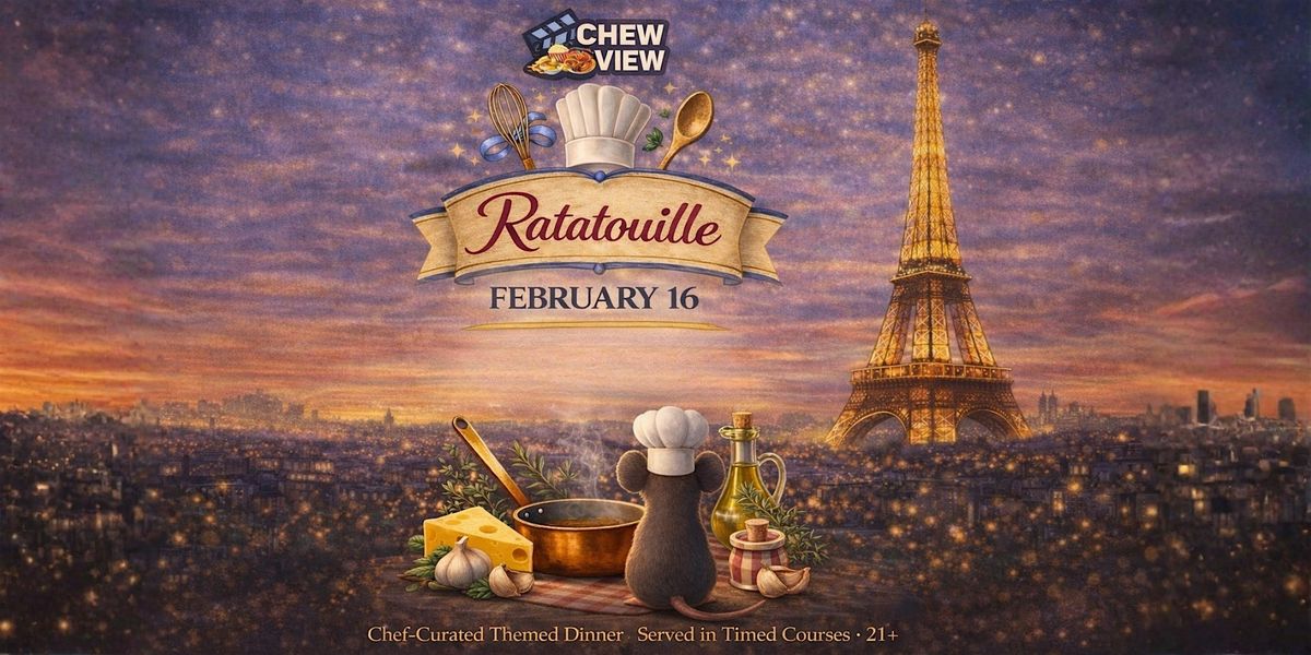 Chew & View presents Ratatouille — a refined cinematic dining experience inspired by the art of cooking, Parisian charm, and the joy of great meals shared together.