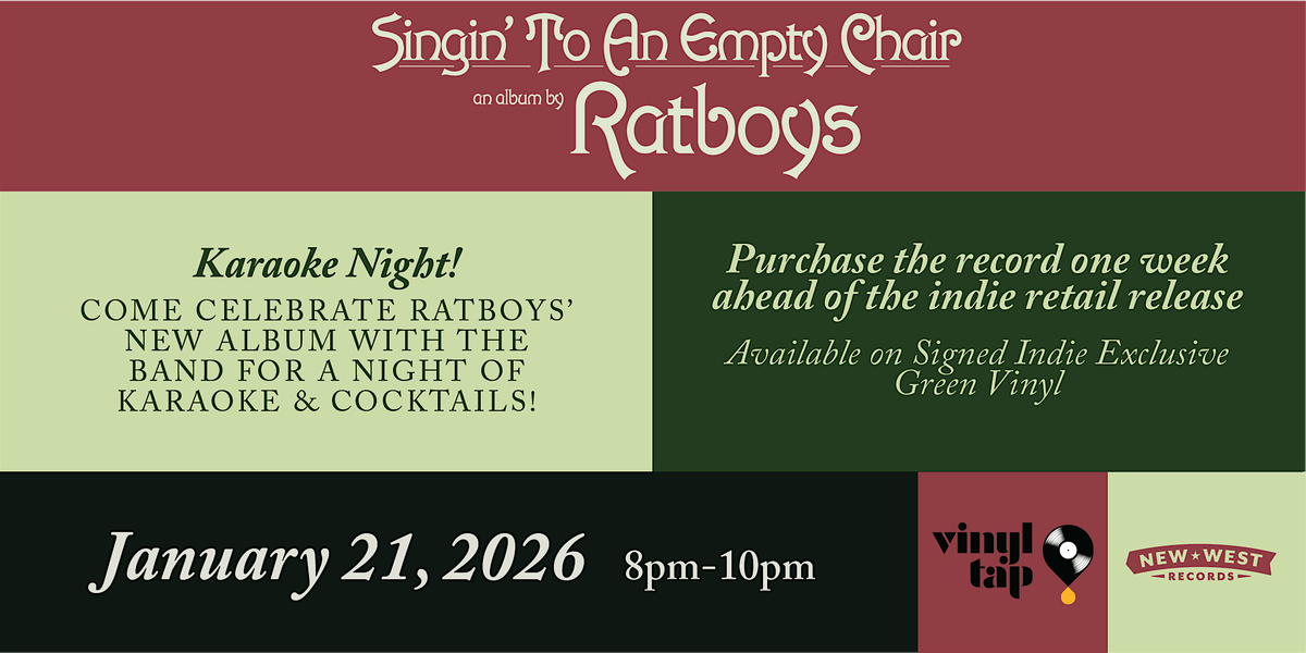 Come celebrate Ratboys' new album, 'Singin' to an Empty Chair,' with the band at Vinyl Tap in Nashville for a night of karaoke and a Ratboys-inspired cocktail.