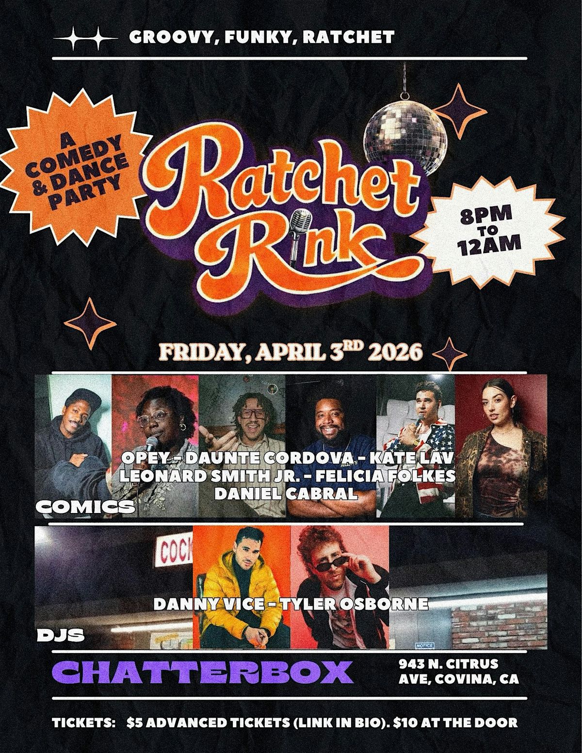 After the comedy show, the night turns into a full-on DJ dance party - high-energy, packed dance floor, and an eclectic mix of groovy, funky, and ratchet records that keep the vibe going all night.