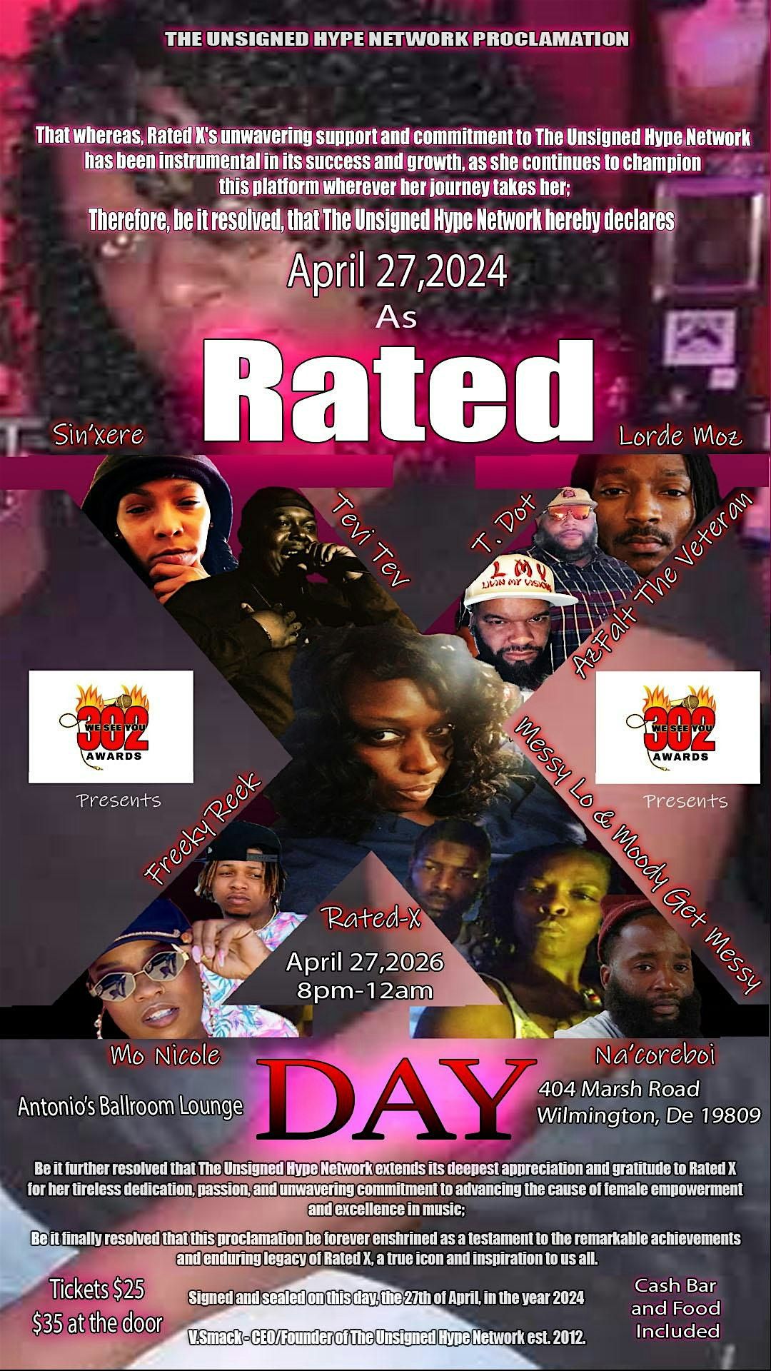 We are back at Antonio's Ballroom & Lounge for Rated "X" Day sponsored by: The 302 We See You Awards. You don't want to miss this one!!!!!!