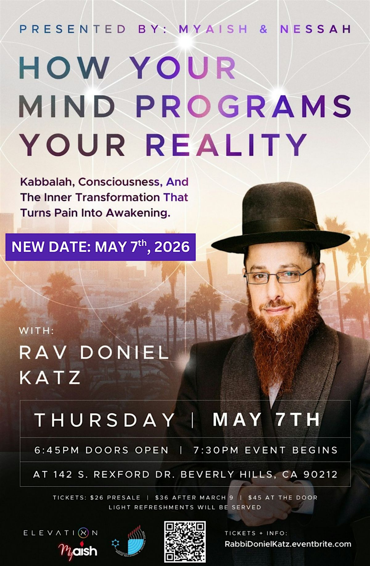 In this powerful and thought-provoking experience, Rav Katz will explore the deeper dimensions of Kabbalah, consciousness, and the inner process that transforms pain into growth, purpose, and lasting change.