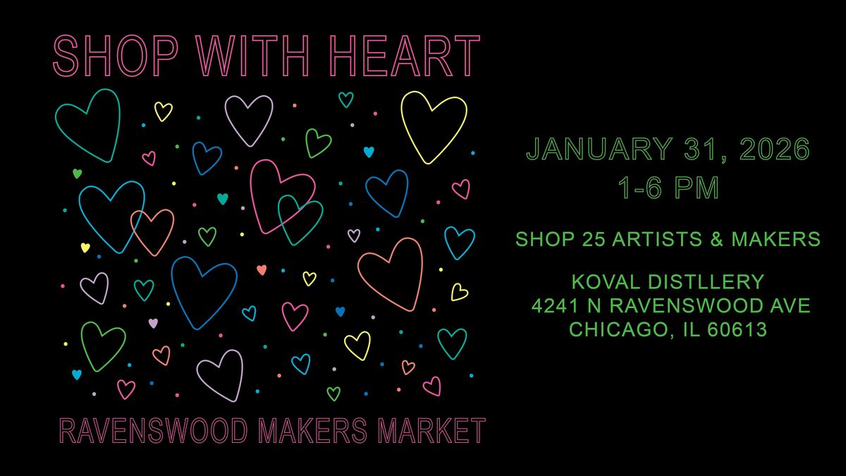 Shop with Heart this winter and show some love to local makers!Join us for the Ravenswood Makers Market at KOVAL Distillery in Chicago for a special seasonal shopping event celebrating creativity, community, and small businesses. Enjoy browsing thoughtfully made goods from talented local makers—all in one cozy location, with a drink in hand if you choose.Event Location:KOVAL Distillery