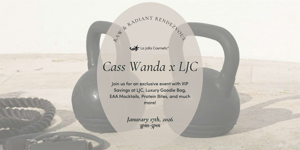 Celebrate with us at La Jolla Cosmetic x Cass Wanda! Enjoy delicious EAA mocktails from The Lab, protein-packed bites from The Protein Bar, 25% off your first LJC treatment when you book* that day, a complimentary year membership (valued at $140)and free personalized skin analyses (valued at $150) with our expert LJC providers. Plus, first 30 event attendees will take home a luxurious goodie bag!