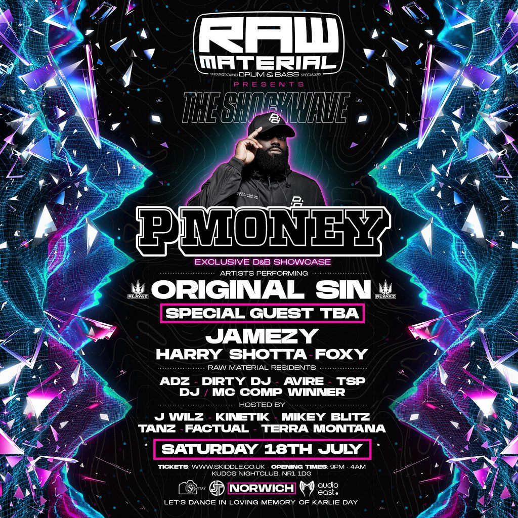 Raw Material Presents The Shockwave - P Money - Original Sin - Very Special Guest TBA - Jamezy - Harry Shotta - Foxy + More - Kudos Nightclub NorwichArtists