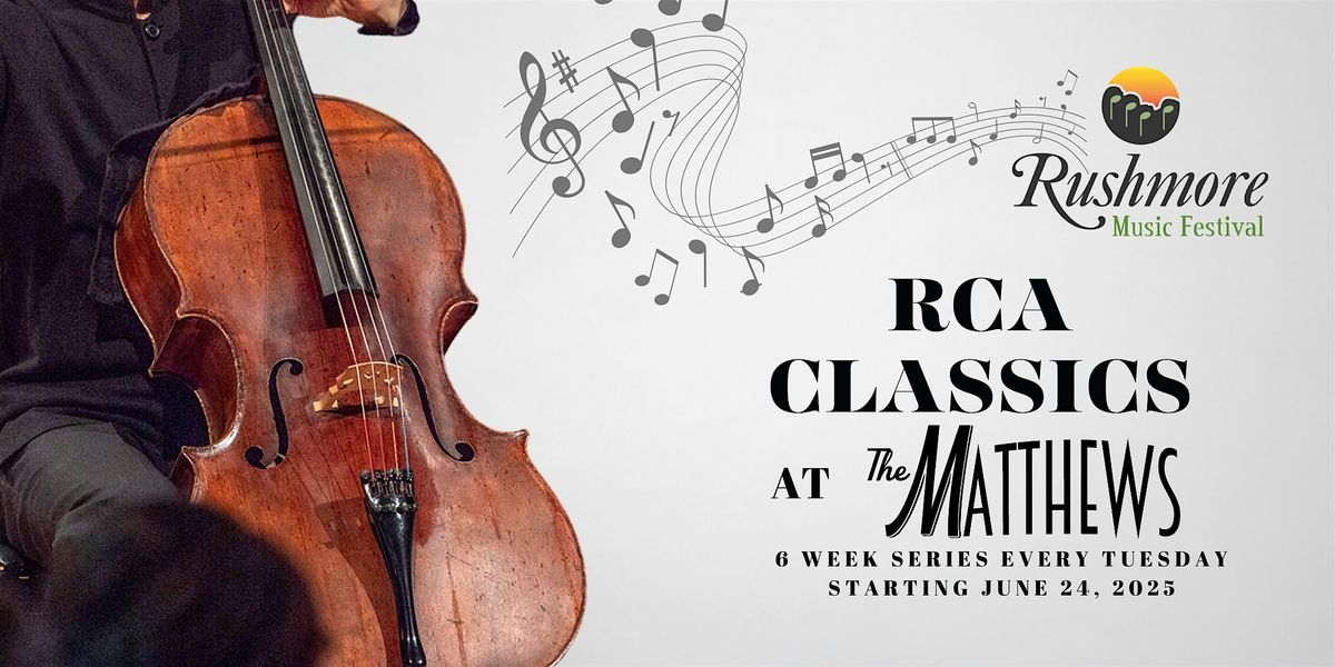 Experience world-class chamber music in the heart of Spearfish as The Matthews and Rushmore Music Festival present RCA Classics at The Matthews. This six-part summer concert series features the Rushmore Concert Artists performing electrifying chamber works every Tuesday evening from June 24 to July 29, 2025.