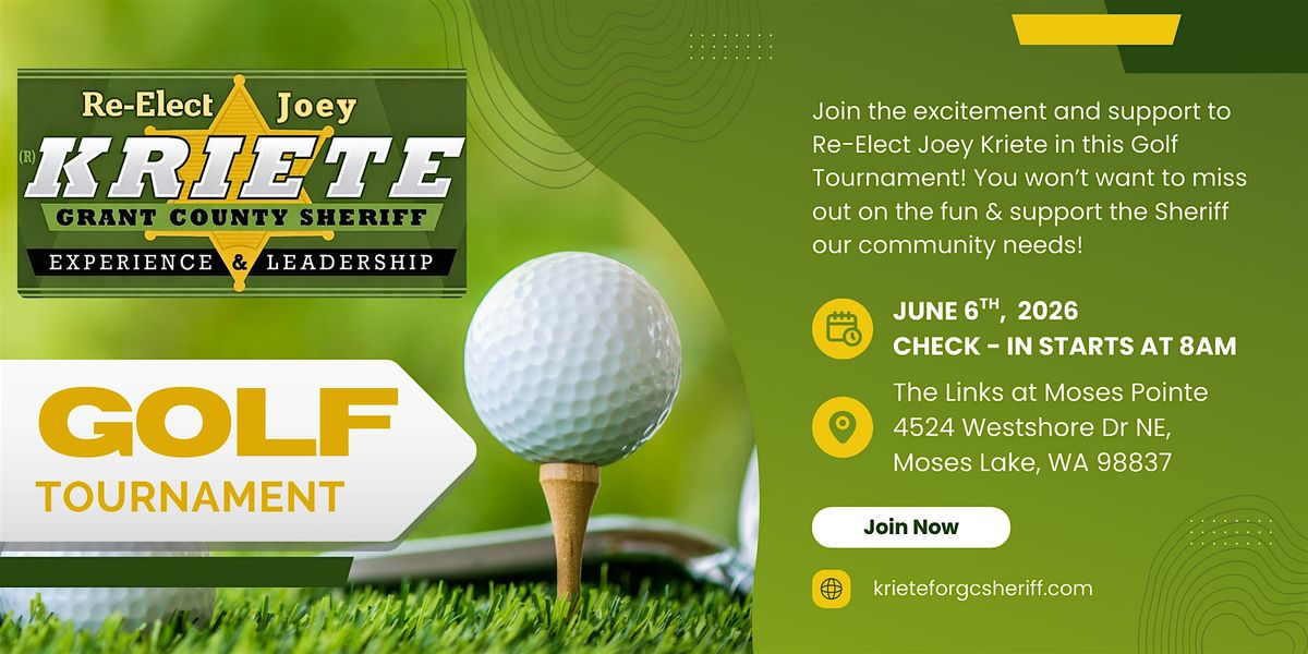 Love golf and want to support to Re-Elect Joey Kriete for Grant County Sheriff? Don't miss this 4 person scramble tournament where fun meets supporting to re-elect the Sheriff that Grant County deserves! Swing your clubs and show your support for Joey Kriete in a day full of great shots, laughs, and good vibes. Whether you're a pro or just enjoy a casual round, this tournament is all about community and having a blast outdoors. Grab your clubs and get ready to tee off!