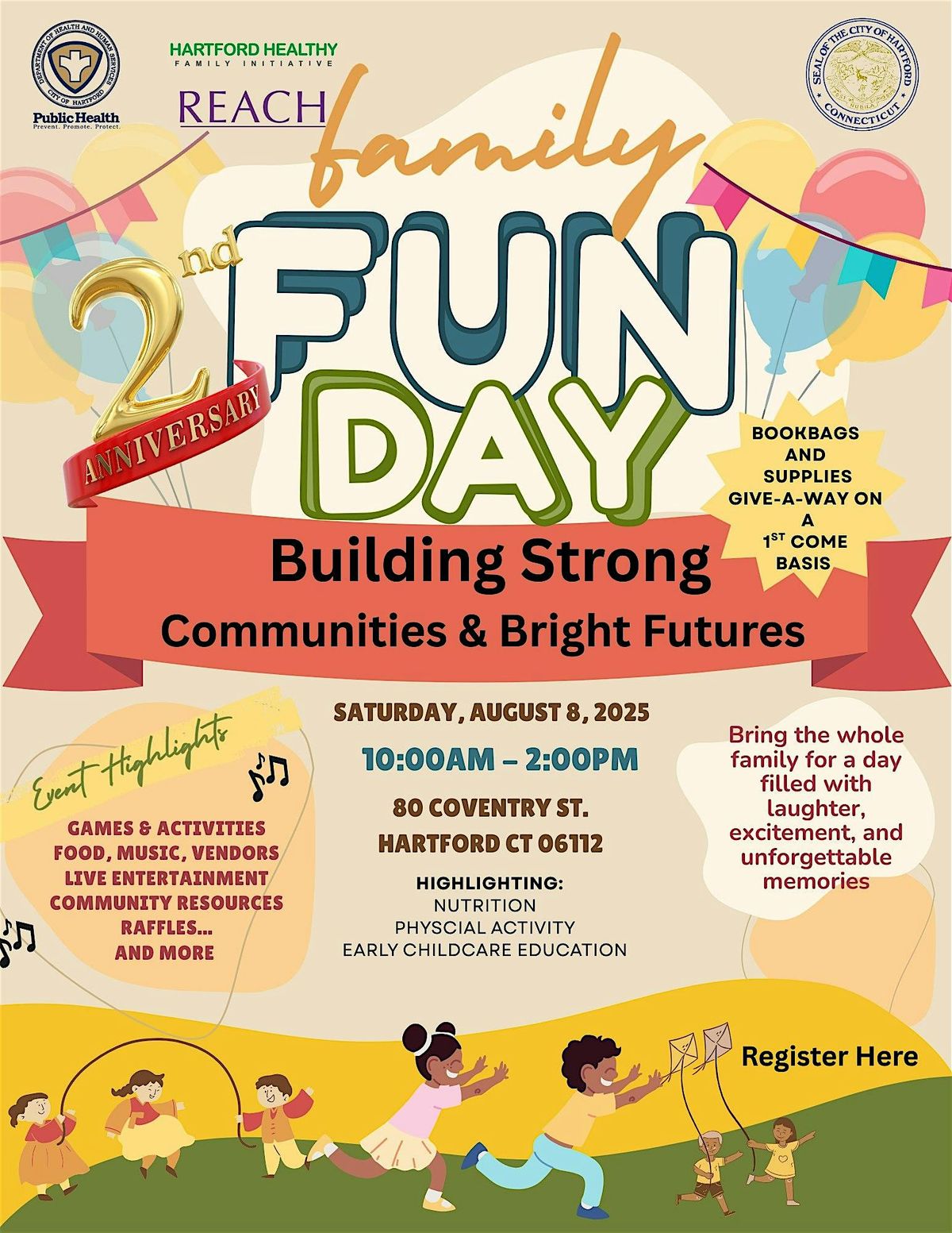 Join us for a day of fun activities and community building to create a brighter future together! Come join us for a day filled with fun activities and opportunities to connect with your community! Our event will be held at 80 Coventry St Hartford CT, where we'll have games, food, and chances to learn how to build a brighter future together by engaging in nutrition education, physical activity, and early childcare fun. Whether you're a long-time resident or new to the neighborhood, this is a great chance to meet your neighbors, receive helpful resources, and make new friends. Let's come together to strengthen our community and create a positive future for everyone! Bring the family, bring your friends! This is one community event you wont want to miss!