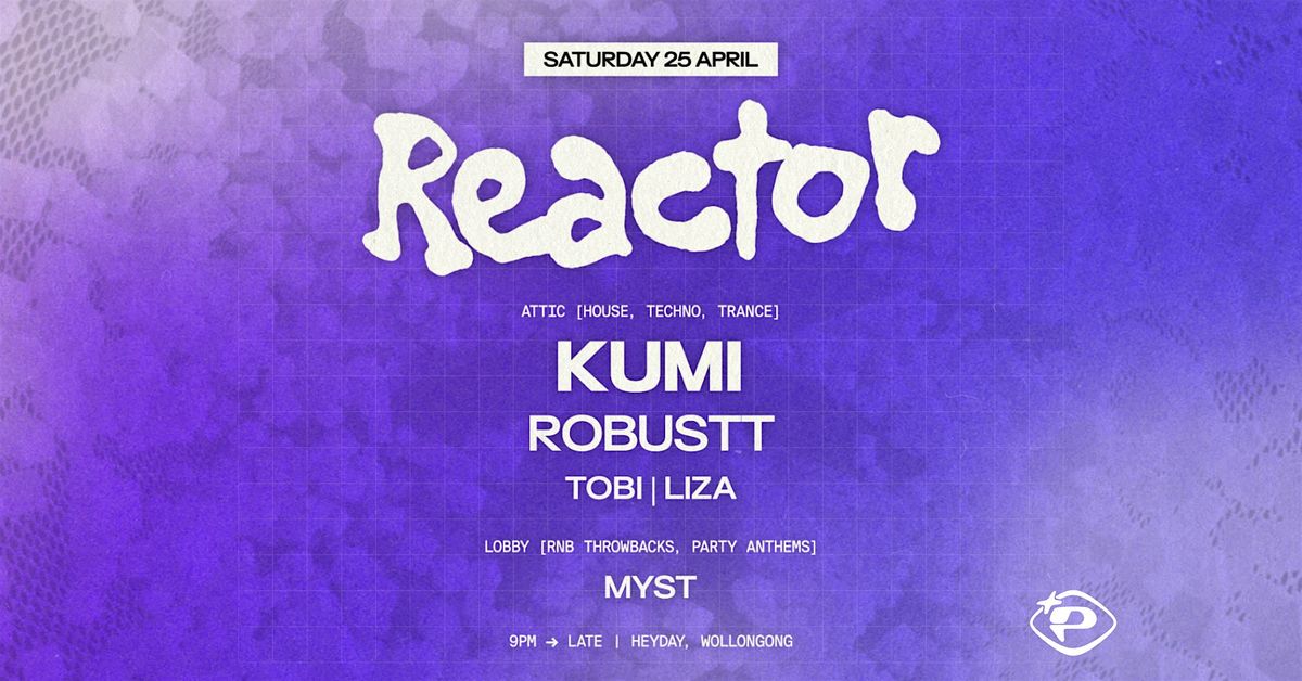 On April 25 (ANZAC Day) at Heyday, REACTOR welcomes KUMI and Robustt to take over the Attic, closing out the month with a stacked long weekend event.