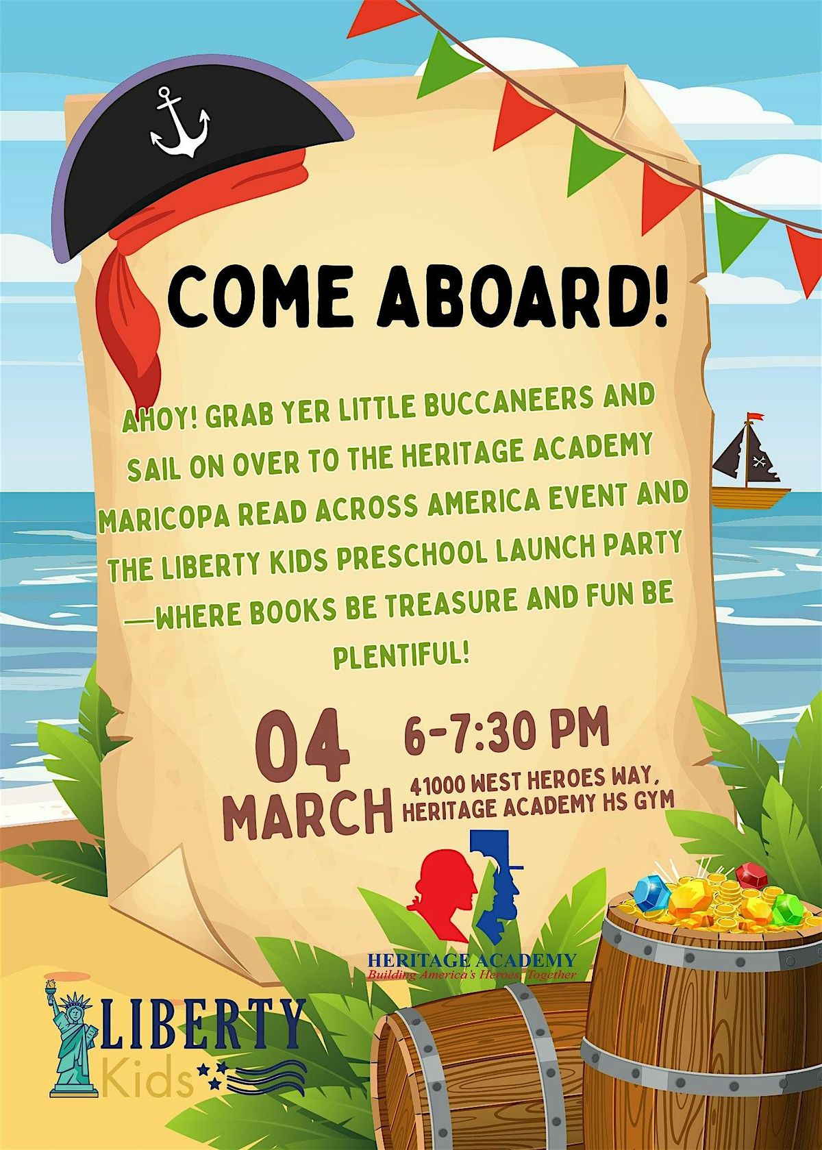 Ahoy! Grab yer little buccaneers and sail on over to the Heritage Academy Maricopa Read Across America Event and the Liberty Kids Preschool Launch Party—where books be treasure and fun be plentiful!