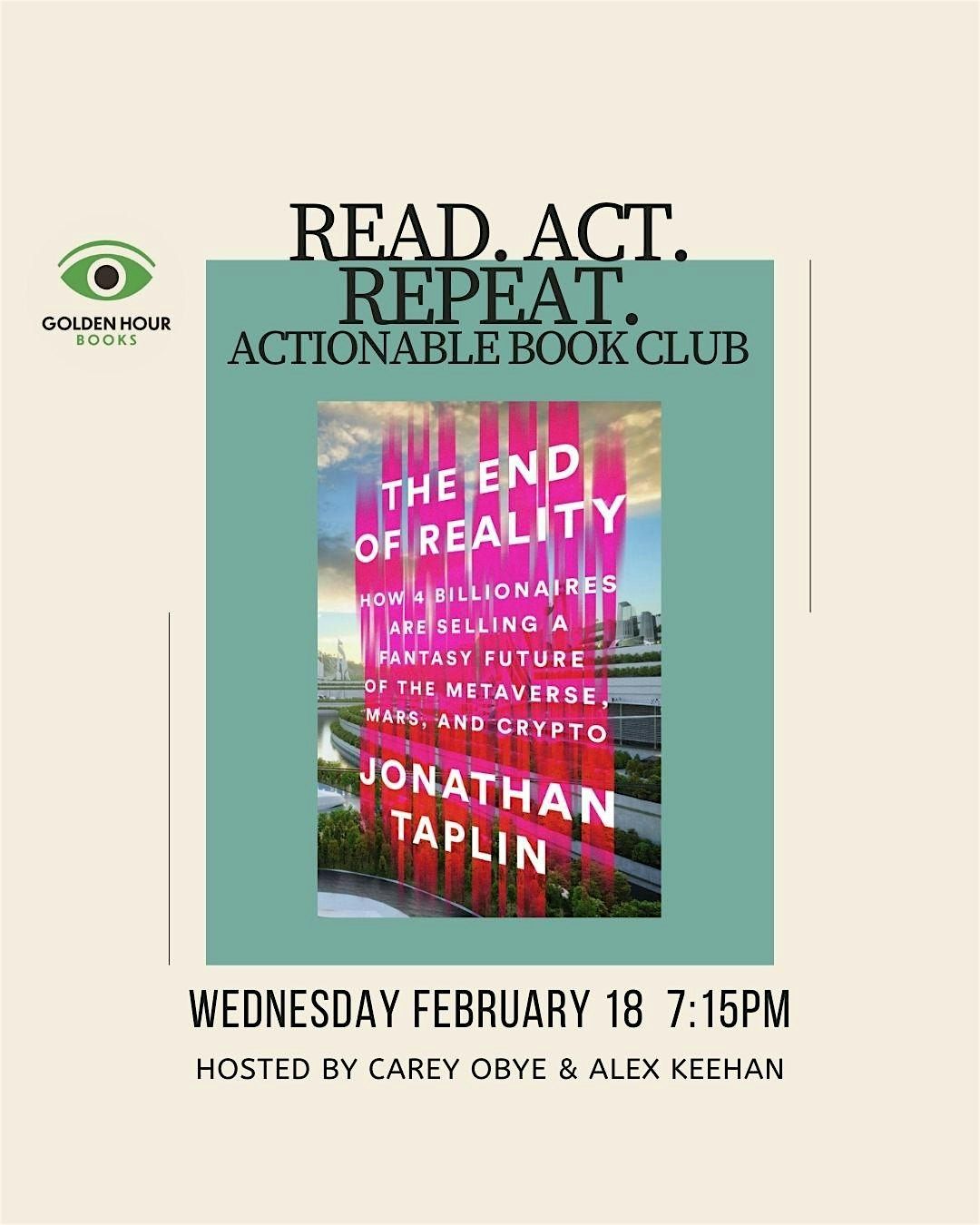 Join us for this month's meeting of the Read. Act. Repeat. book club at Golden Hour Books.