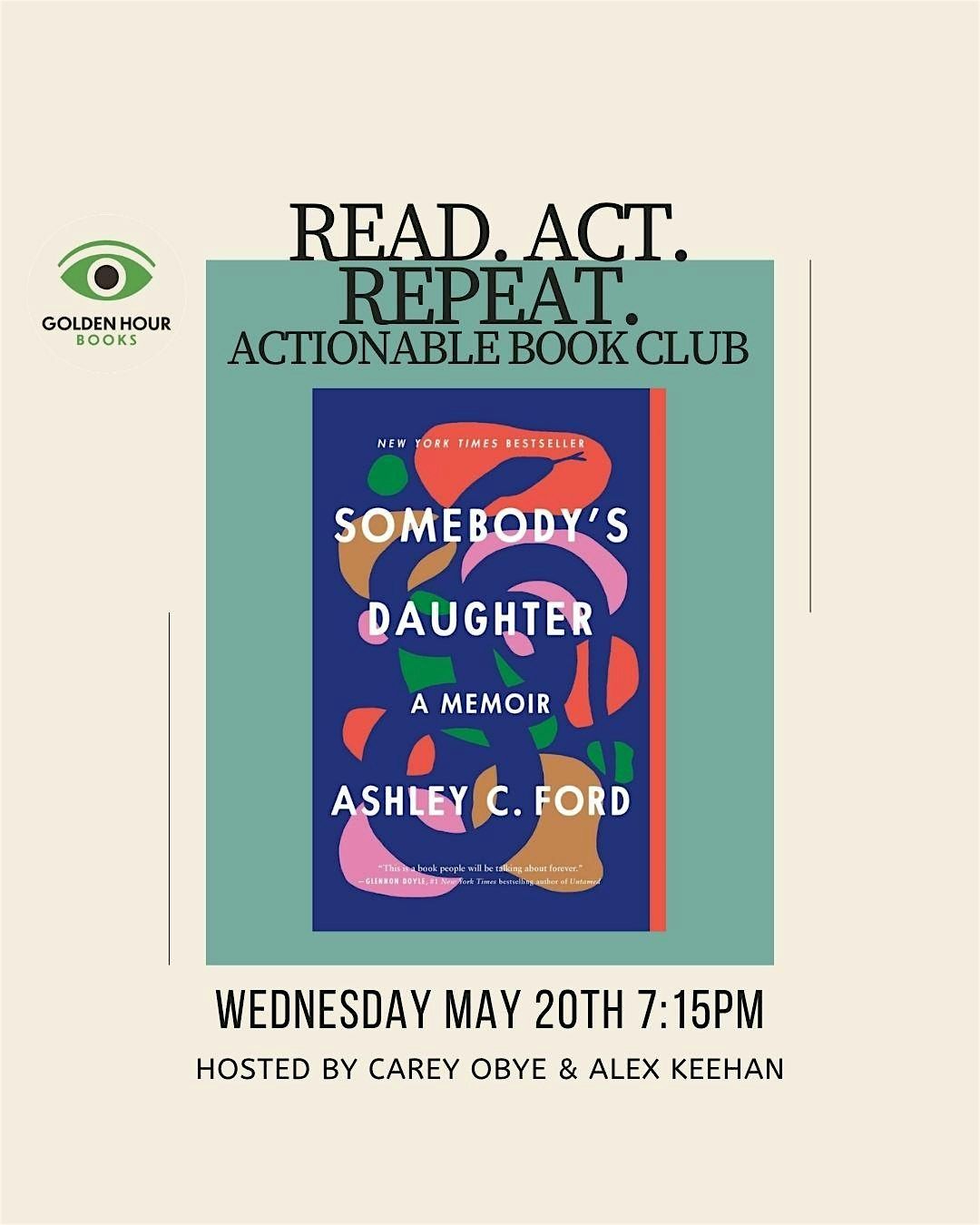 Join us for this month's meeting of the Read. Act. Repeat. book club at Golden Hour Books.