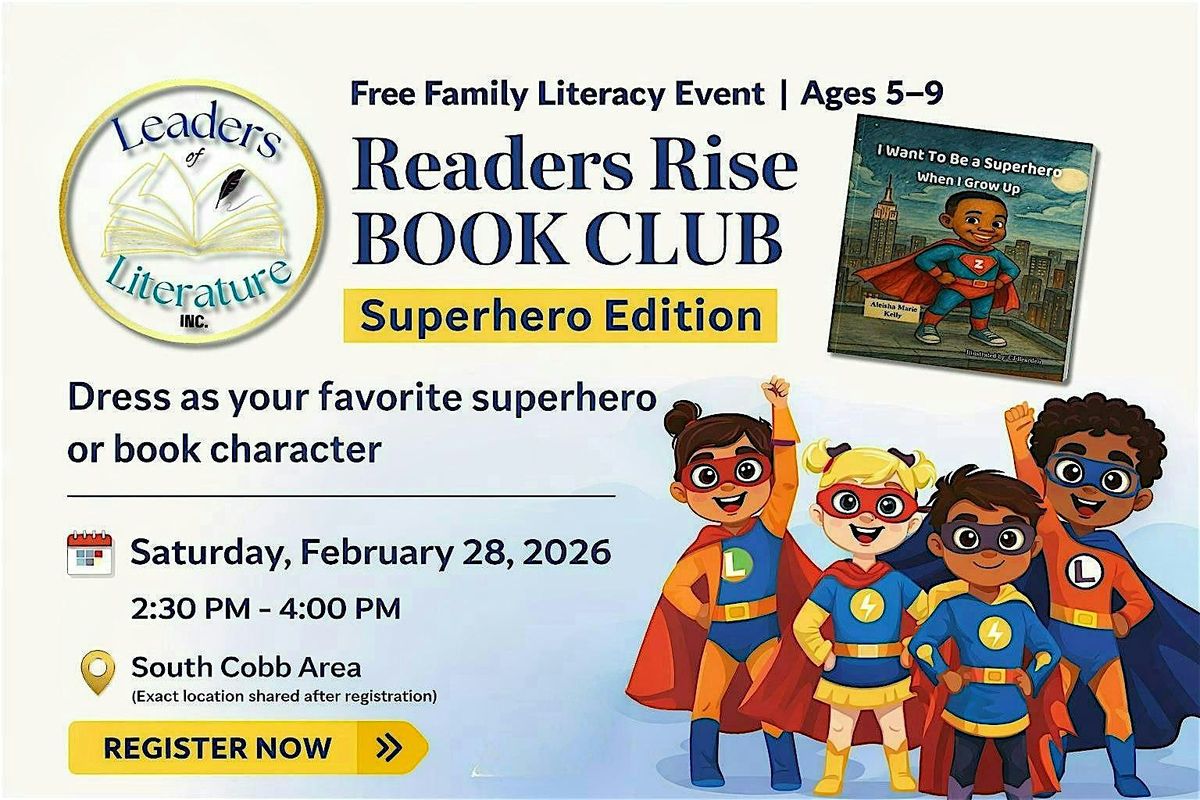 Join Leaders of Literature, a local 501(c)(3) nonprofit, for a fun and empowering Readers Rise Book Club: Superhero Edition designed to inspire confident readers and big dreams.