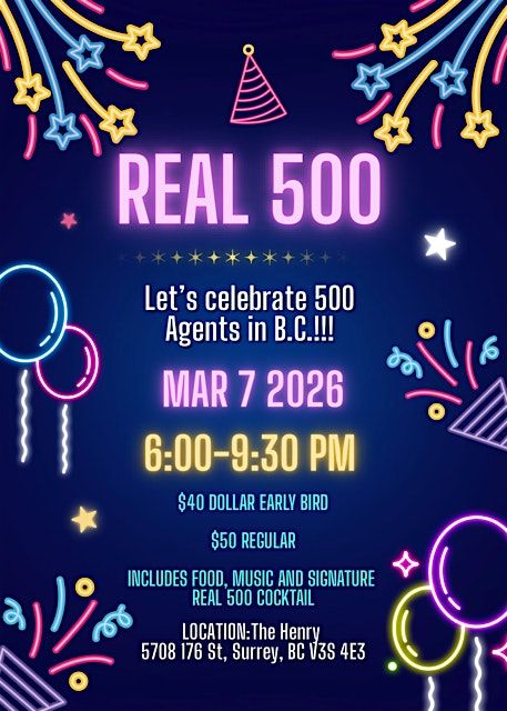 Come join us for REAL 500 at The Henry on March 7, 2026 at 6:00 PM. Get ready for an evening filled with food, drinks, music, excitement and inspiration!