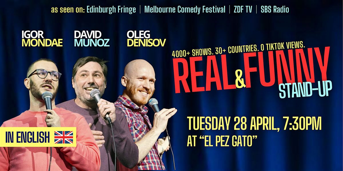 Real & Funny is a live stand-up comedy experience featuring three veteran international comedians with proven track record performing for live audiences from all over the world - not social media algorythms.