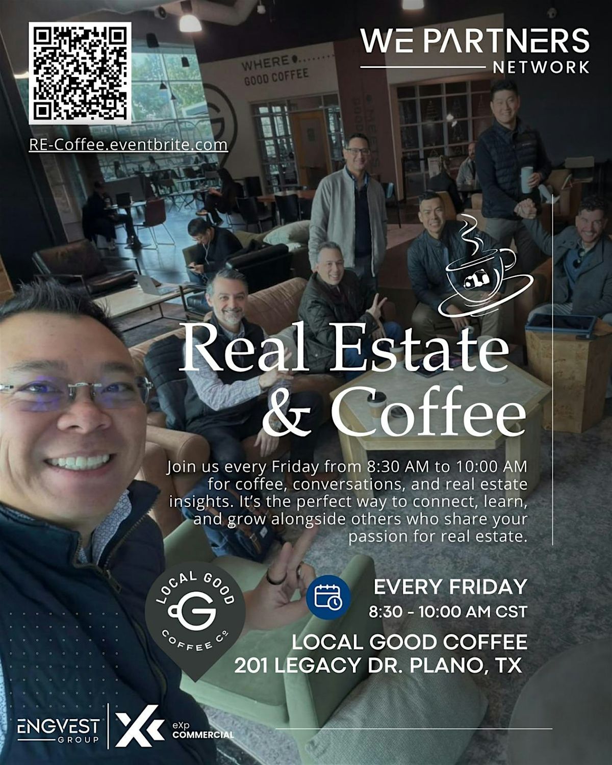 Join us for "Real Estate & Coffee" every Friday from 8:30 AM to 10:00 AM for an invigorating morning of insights, networking, and delicious coffee!