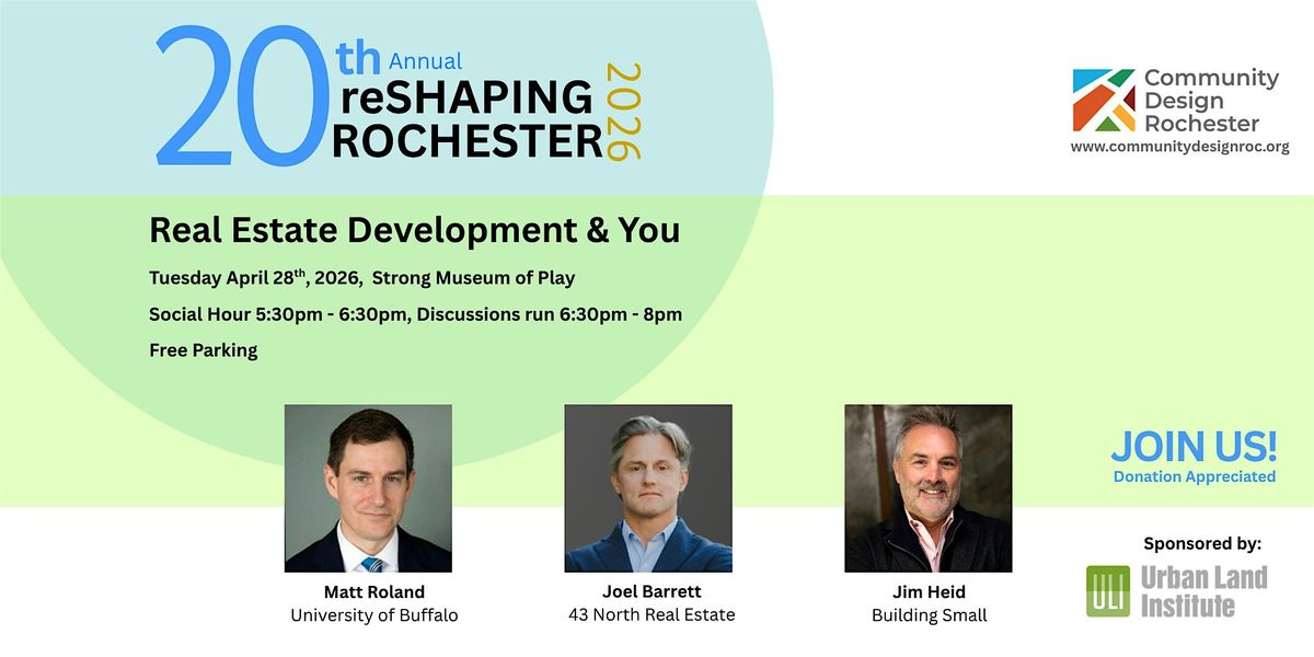 Join us for the 20th Annual ReShaping Rochester Speaker Series for a conversation on Real Estate Development & You.