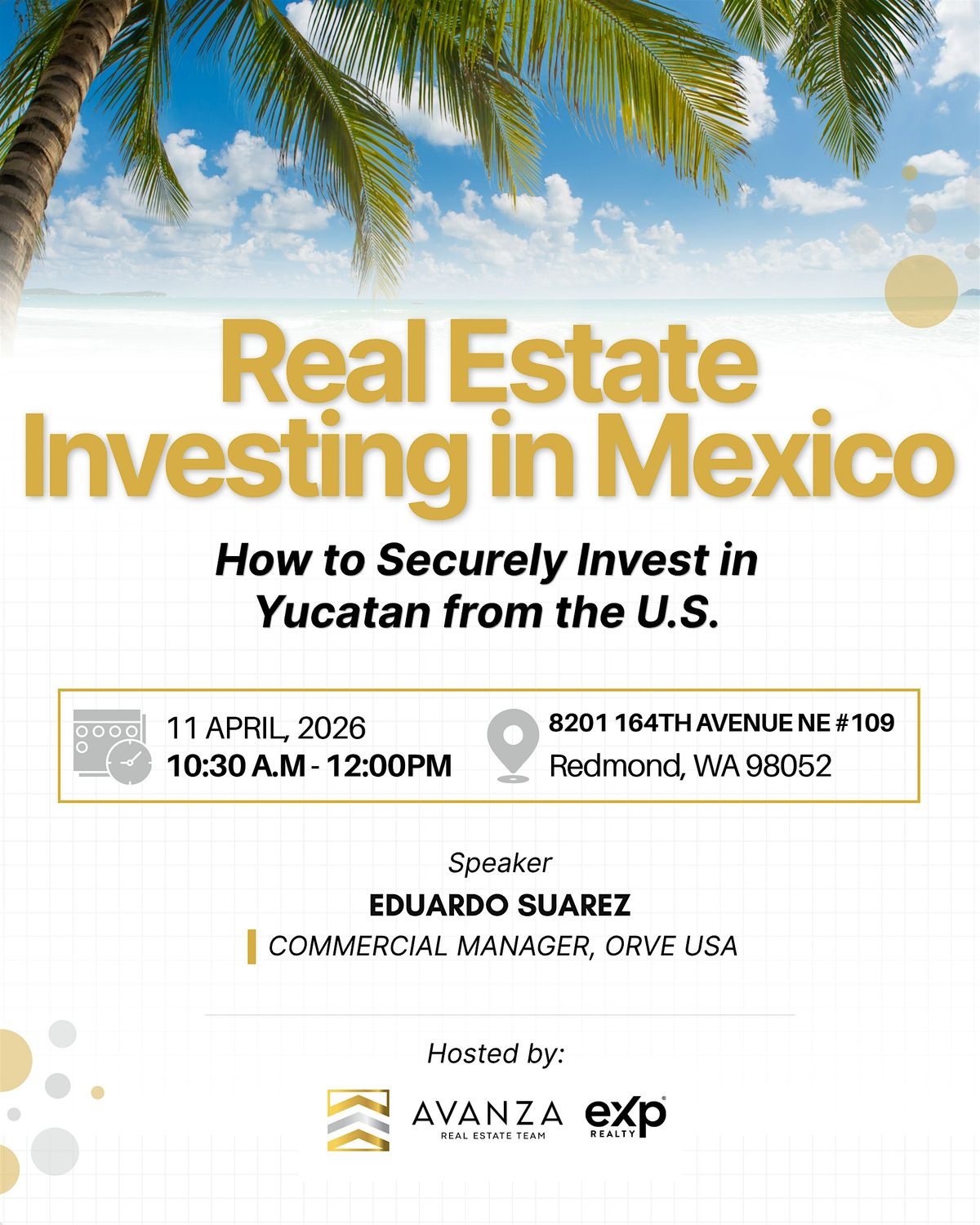 Join us for an in‑person educational event focused on helping U.S.-based investors understand how to securely invest in Yucatán, Mexico.