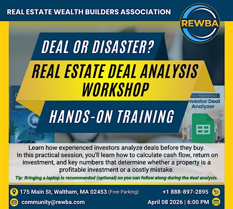 Unlock the secrets to real estate success! Join us for in this exclusive event and learn how experienced investors analyze deals before they buy. In this practical session you will learn how to calculate cash flow, return on investment, and key numbers that determine whether a property is a profitable investment or a costly mistake.