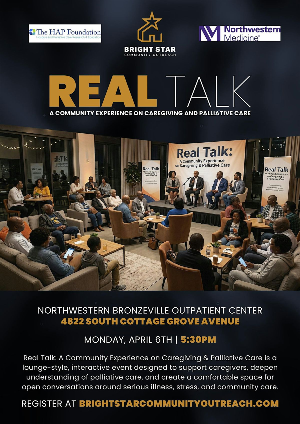 Real Talk is more than an event—it’s an experience designed to support and uplift caregivers, families, and community members navigating serious illness and the realities of caregiving. In a warm, lounge-style environment, we’re creating a culturally comfortable space where real conversations can happen.