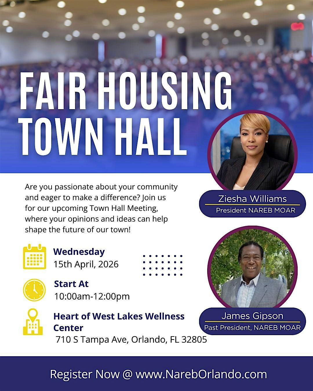 Fair housing isn't history - it's happening right now. Join NAREB Metro Orlando Association of Realtists for our Fair Housing Town Hall, part of Realtist Week 2026 (NAREB's nationwide push for Democracy in Housing).