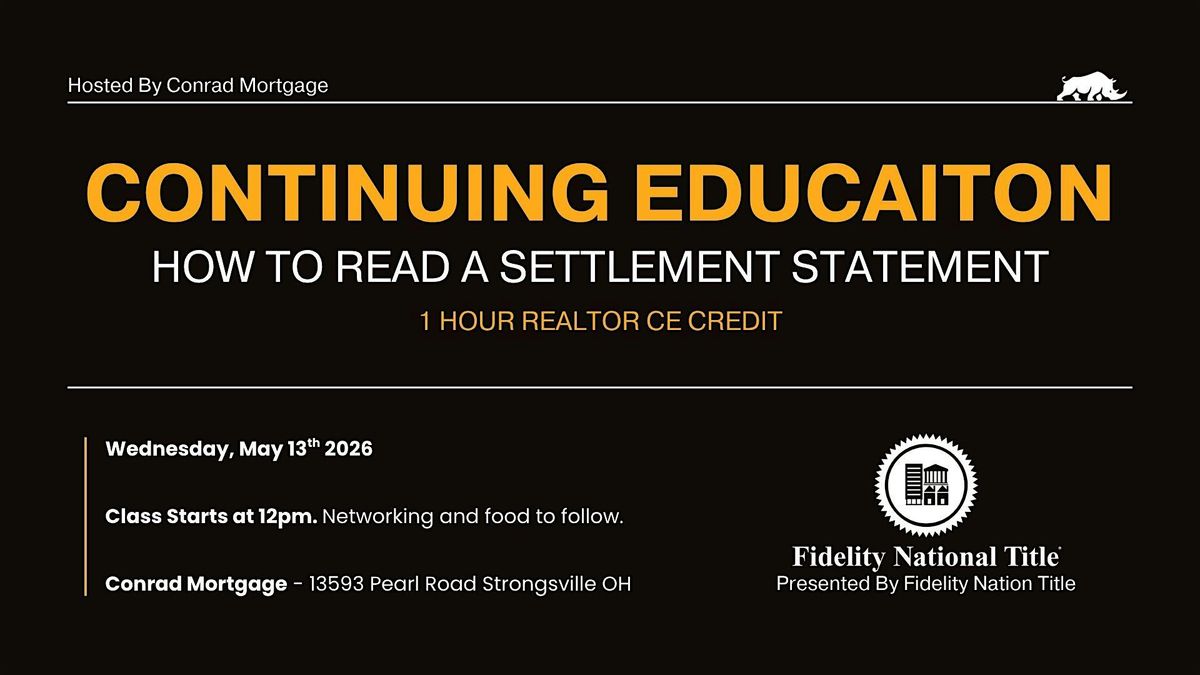 Event Details: 📅 Wednesday, May 13th, 2026 🕛 Class starts at 12:00 PM 📍 Conrad Mortgage | 13593 Pearl Road, Strongsville, OH