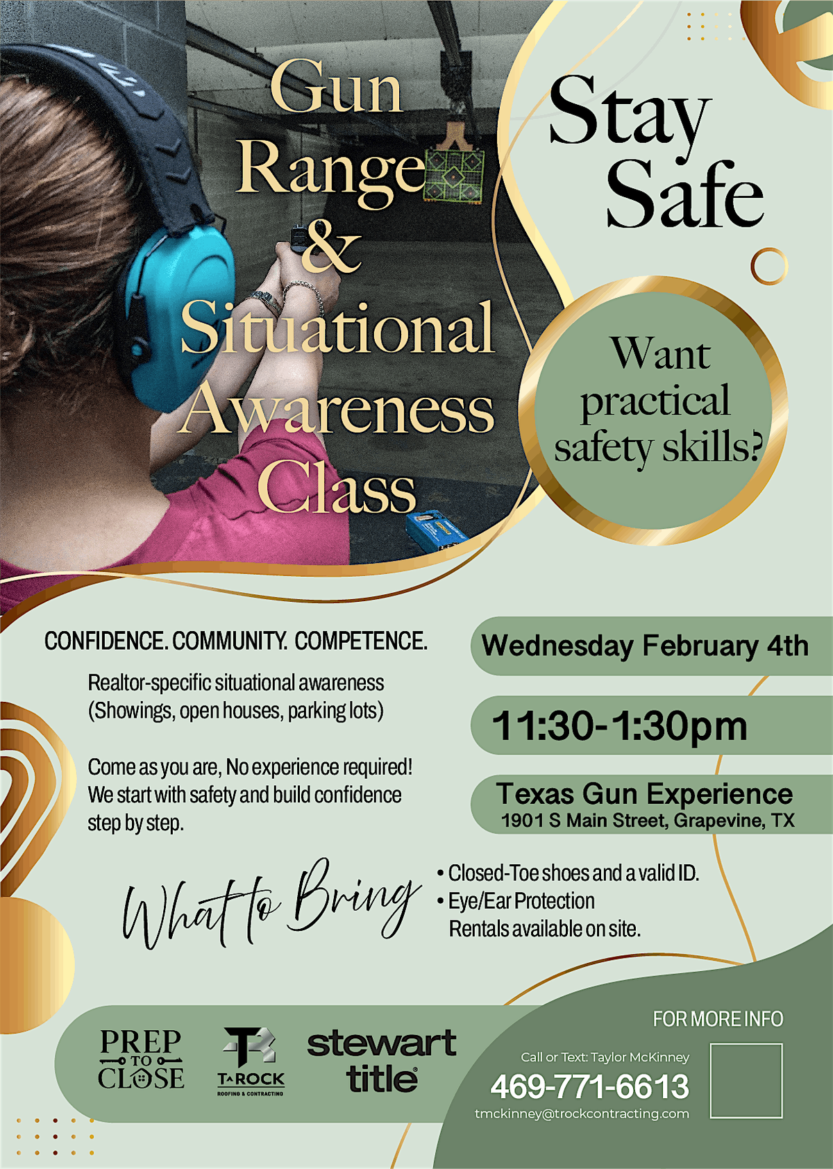 Realtors please us for a hands-on safety class designed specifically for realtors for situational awareness! This in-person session will cover all the basics you need to feel confident and secure at work. You will spend time in the range shooting with a teacher whether you're a beginner or just looking to brush up, our friendly instructors will guide you through essential gun safety practices. Don’t miss out on this fun and informative experience to boost your skills and knowledge!