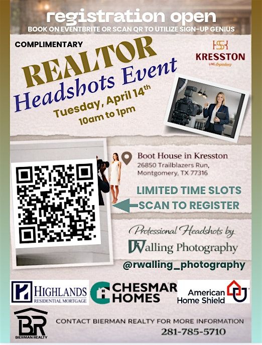 Teams and Groups welcome - contact Anna Bierman 281-785-5710 to assist you with Team/Group Registration. Rachel will send you your BEST shot and offer others to you as well - she is looking to meet Realtors and expand her services in to the real estate industry