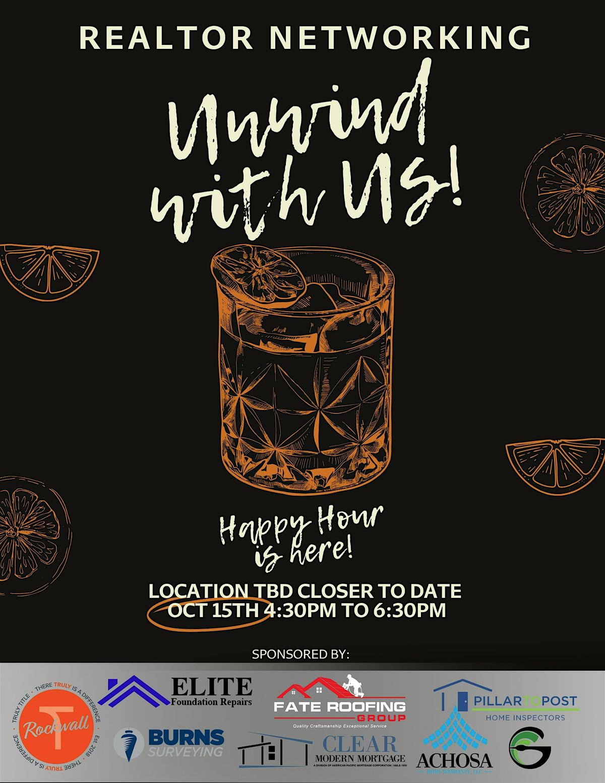 Calling all Realtors! Join us for our September Happy Hour. **NOTE: Location TBD closer to date.** Location May Change.