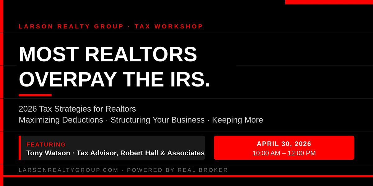 Join us on April 30th for a hands-on tax strategy workshop designed specifically for real estate agents. Tony Watson, Tax Advisor at Robert Hall & Associates, will walk through the practical moves that help agents keep more of what they earn.