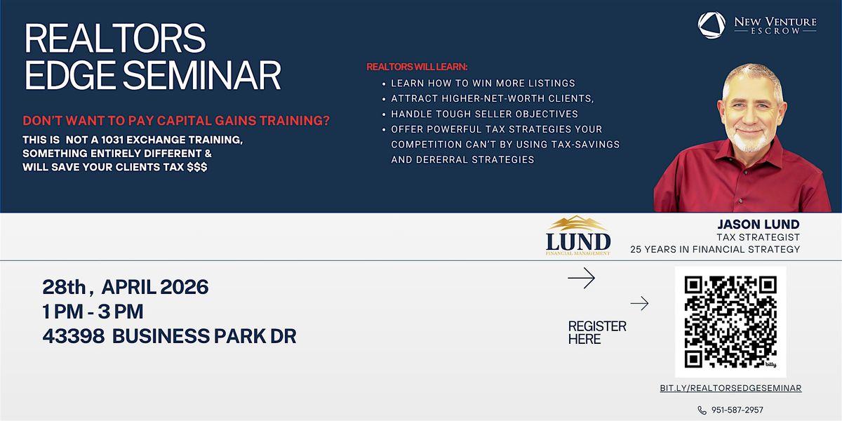 In this seminar, you’ll discover powerful, lesser-known strategies that can help your clients reduce or defer capital gains taxes while positioning YOU as the agent who brings real value to the table.