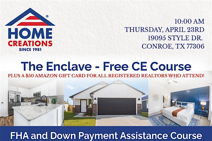 One of the biggest reasons buyers stay on the sidelines is the belief that they don’t have enough money for a down payment. In this FREE Realtor CE course, you’ll learn how FHA loans and down payment assistance programs can help remove that barrier and open the door to homeownership. Join us at Home Creations’ model home in The Enclave at Spring Branch Crossing in Conroe, TX, where low tax rates and homes starting in the $230s make that dream even more attainable. Walk away with the knowledge and tools to confidently guide your clients, and get them into the home of their dreams sooner than they thought possible.